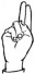 На ћирилици написано ВОЈНА ИВОВИЋ састоји се из 11 слова [?]. Исписано ћириличном једноручном азбуком за глувонеме: